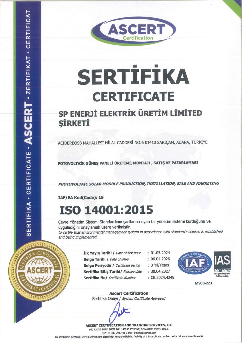 ISO 14001: 2015 Çevre Yönetim Sistemi Belgesi