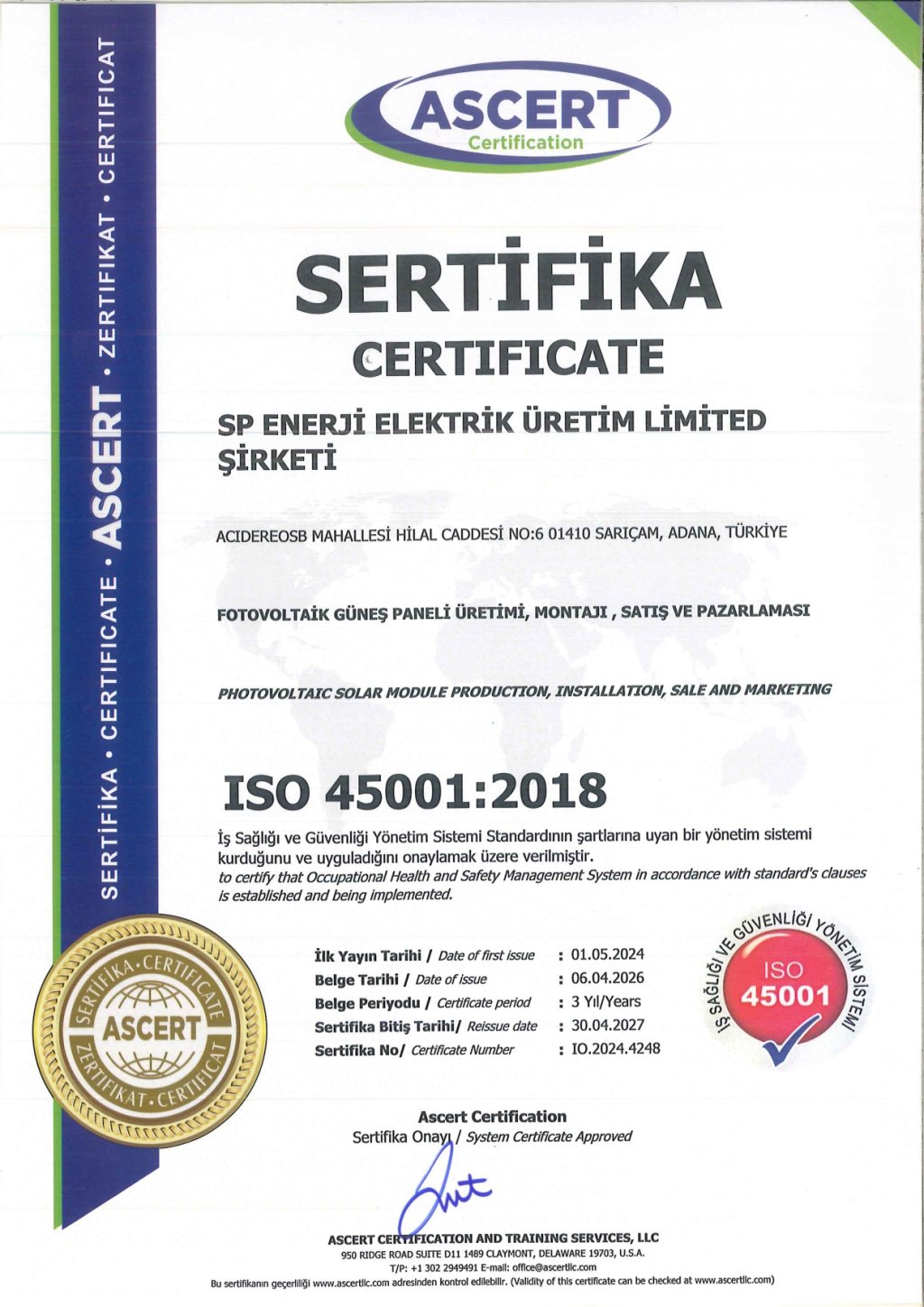 ISO 45001:2018 İş Sağlığı ve İşçi Güvenliği Yönetim Sistemi Belgesi
